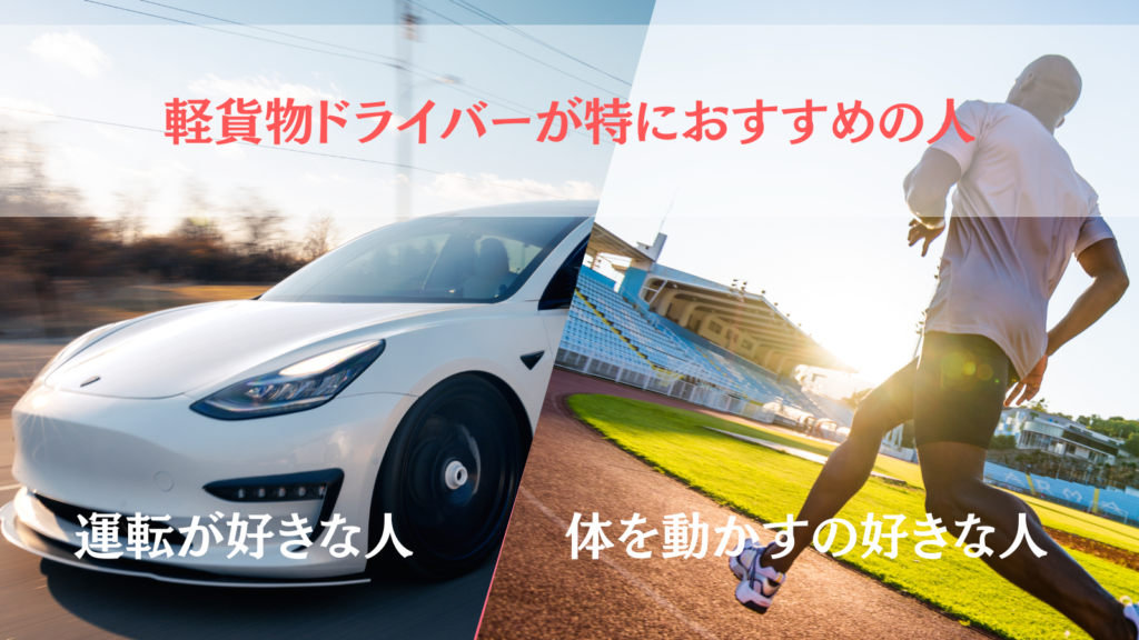 車の運転が好きな方、体を動かすのが好きな方にピッタリ。